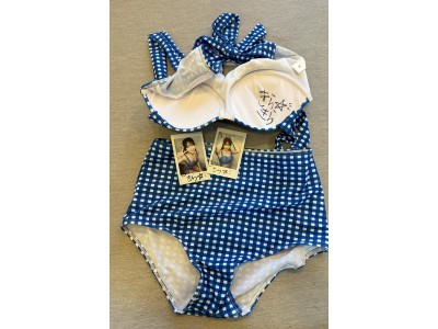 | 輝星きらちゃんがサイン会で着用したビキニとサイン入りインスタントフィルム